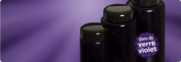 Nos flacons en verre violet protègent les matières premières délicates plus efficacement et ont beaucoup d’autres avantages.